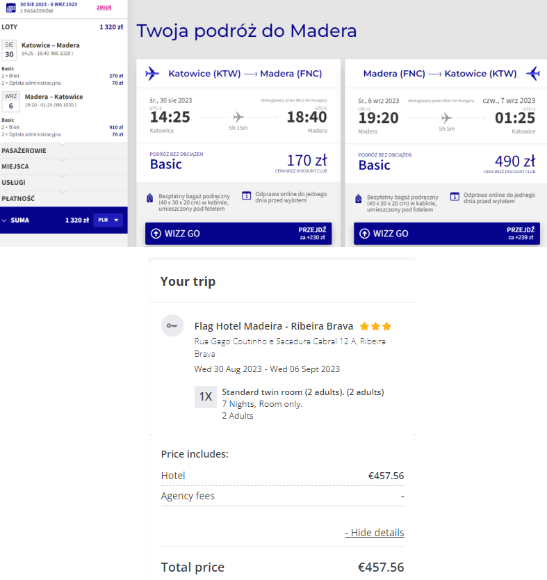 Bilety lotnicze na trasie Katowice - Funchal - Katowice za 1320 zł dla 2 osób rezerwujesz tutaj.