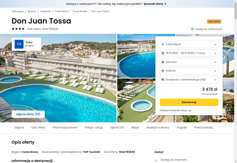 Aktualizacja: Październikowy urlop: Costa Brava, 4* z wyżywieniem od 1557 zł