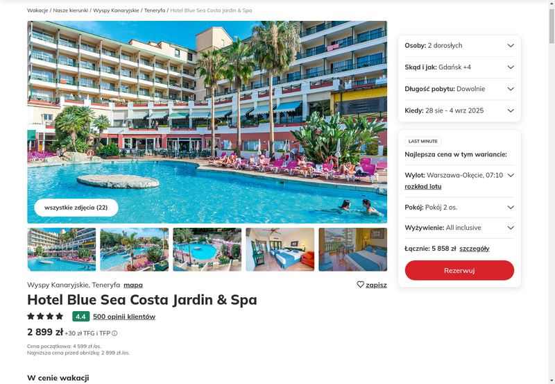 Aktualizacja: Teneryfa na pożegnanie wakacji: 4* hotel z all inclusive od 2799 zł