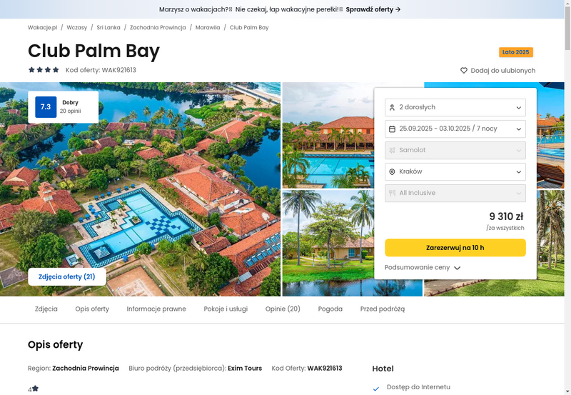 Oferty wycieczek dostarczone przez naszych partnerów nie są aktualizowane w czasie rzeczywistym, w związku z czym ceny i dostępność ofert mogą się nieznacznie różnić od aktualnych. Dokładamy wszelkich starań aby rozbieżności były jak najmniejsze.