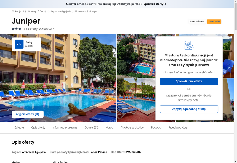 Niedostępność oferty została udokumentowana zrzutem ekranu.