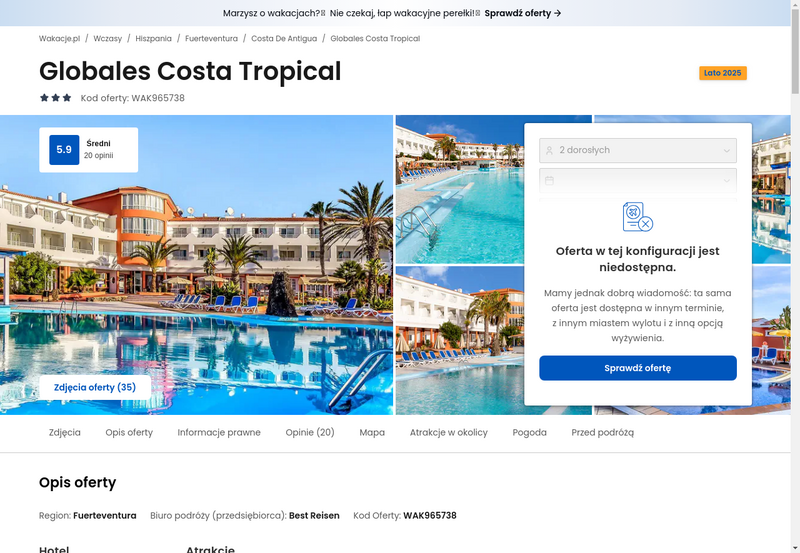 Niedostępność oferty została udokumentowana zrzutem ekranu.