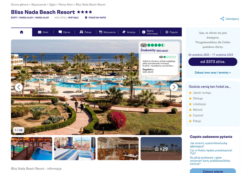 Niedostępność oferty została udokumentowana zrzutem ekranu.