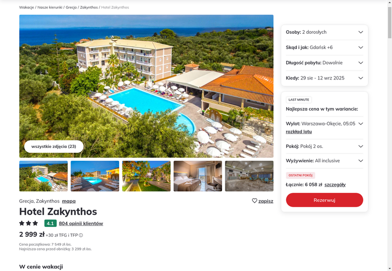 Aktualizacja: Malownicza wyspa Zakintos last minute: 14 dni w 3* hotelu z all inclusive za 2899 zł