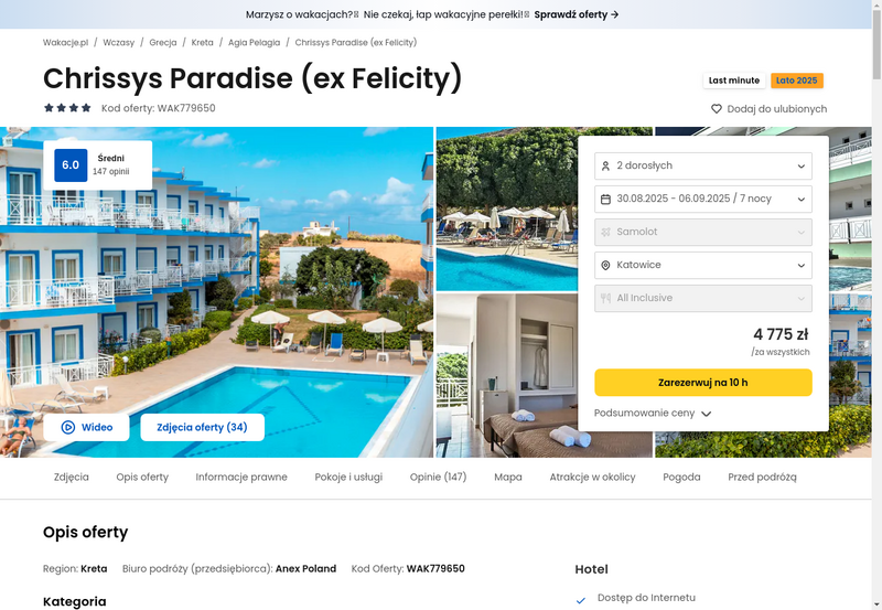 Aktualizacja: Słoneczny tydzień: Kreta, 4* hotel z all inclusive od 2334 zł