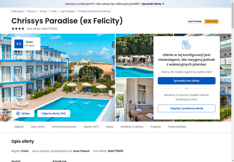 Niedostępność oferty została udokumentowana zrzutem ekranu.