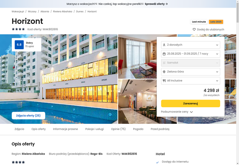 Misją Lastminuter.pl jest przedstawienie Ci najlepszych zdaniem naszej redakcji okazji na podróże. Opisujemy oferty znalezione przez nas w internecie i wskazujemy adresy internetowe, pod którymi samodzielnie możesz wykupić podróż lub elementy podróży. Ceny w artykułach są aktualne w chwili publikacji. Możemy otrzymywać wynagrodzenie od partnerów handlowych, do których Cię przekierowujemy. Nie ma to wpływu na cenę Twojej wycieczki. Powielanie publikacji zabronione.