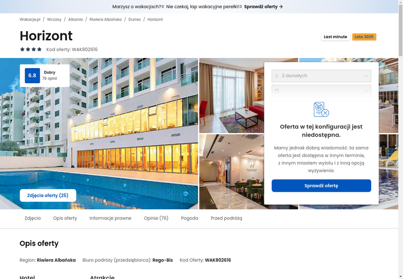 Niedostępność oferty została udokumentowana zrzutem ekranu.