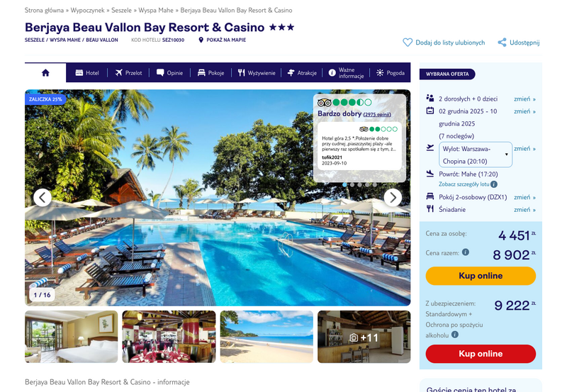 Aktualizacja: Rajski wypoczynek na Seszelach: 3* hotel ze śniadaniami przy plaży od 4447 zł. Dużo terminów