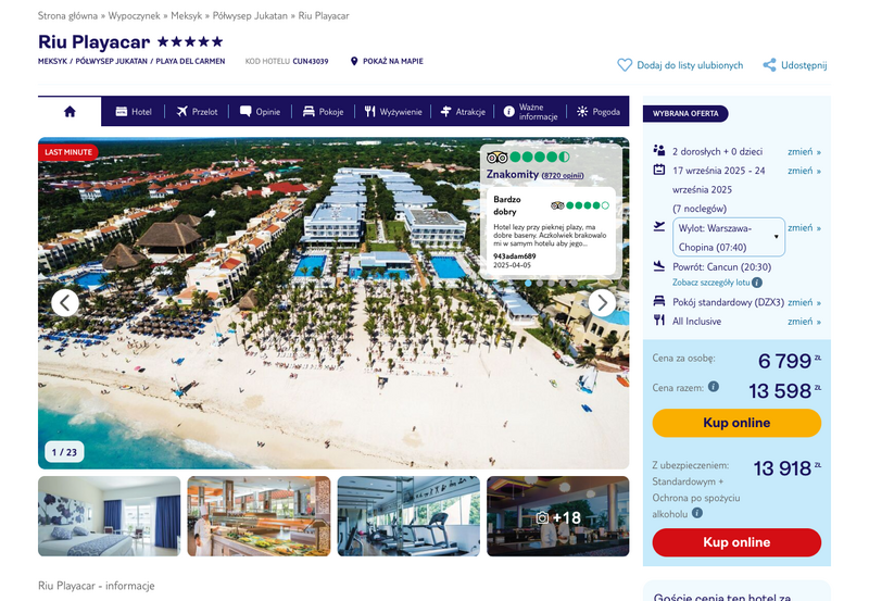 Oferty wycieczek dostarczone przez naszych partnerów nie są aktualizowane w czasie rzeczywistym, w związku z czym ceny i dostępność ofert mogą się nieznacznie różnić od aktualnych. Dokładamy wszelkich starań aby rozbieżności były jak najmniejsze.