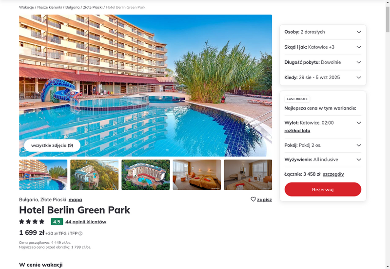 Aktualizacja: Złote Piaski na pożegnanie wakacji: Komfortowy hotel z all inclusive za 1599 zł