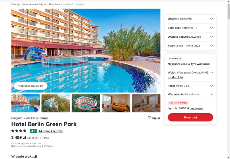 Aktualizacja: Złote Piaski na pożegnanie wakacji: Komfortowy hotel z all inclusive za 1599 zł
