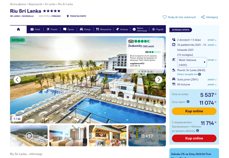 Aktualizacja: Sri Lanka: 10 dni w luksusowym 5* Riu Sri Lanka z all inclusive od 5417 zł