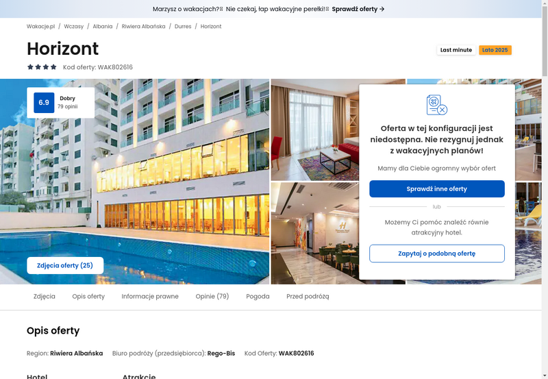 Niedostępność oferty została udokumentowana zrzutem ekranu.