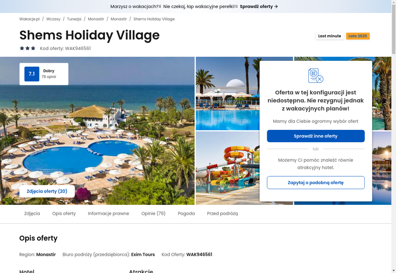 Niedostępność oferty została udokumentowana zrzutem ekranu.