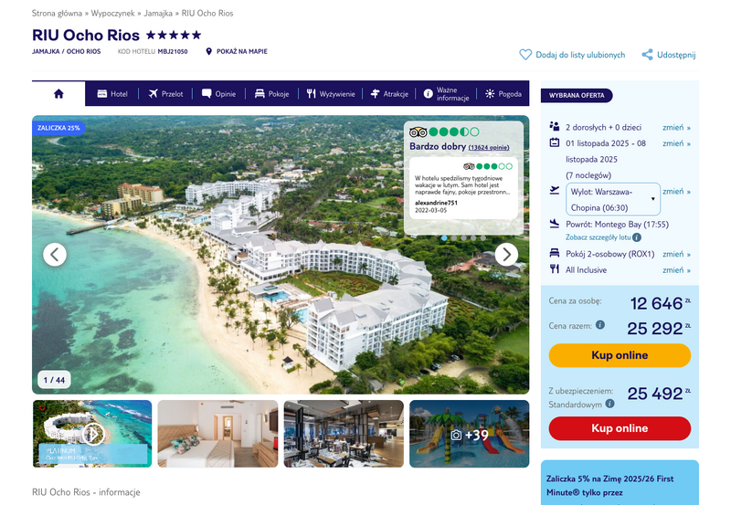 Aktualizacja: Wczasy na Jamajce: 5* Riu Ocho Rios z all inclusive przy plaży od 7185 zł