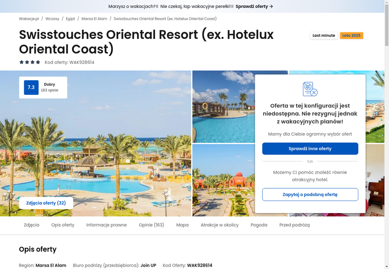 Niedostępność oferty została udokumentowana zrzutem ekranu.