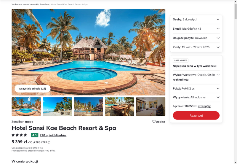 Aktualizacja: Egzotyczny wypoczynek tuż przy plaży: Zanzibar, 4* hotel z all inclusive od 3899 zł
