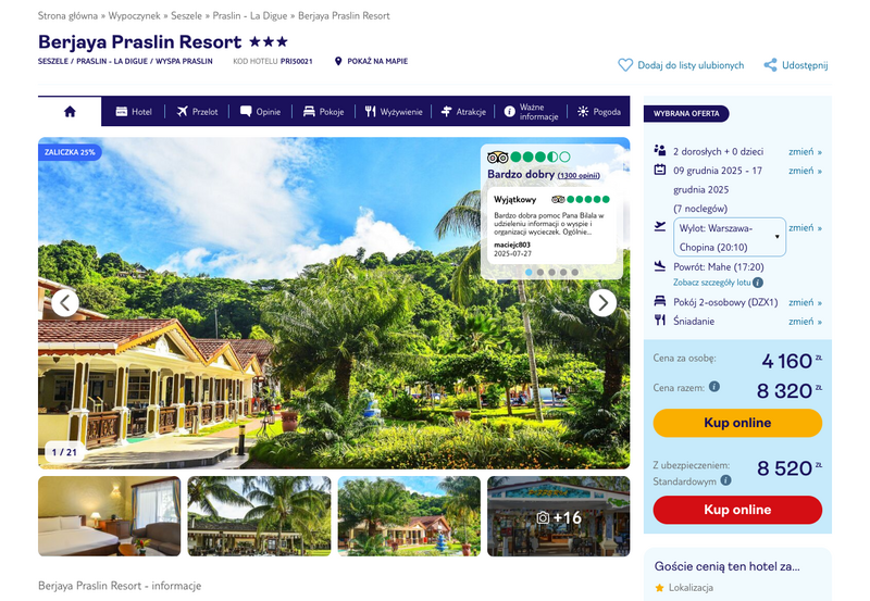 Aktualizacja: Rajskie wczasy na Seszelach: 3* hotel ze śniadaniami od 4161 zł