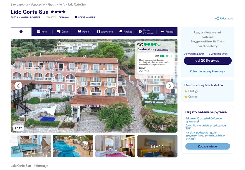 Niedostępność oferty została udokumentowana zrzutem ekranu.