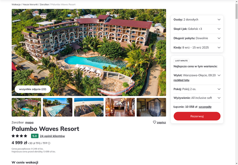 Aktualizacja: Relaks nad oceanem: Zanzibar, komfortowy 4* hotel z all inclusive soft od 3699 zł