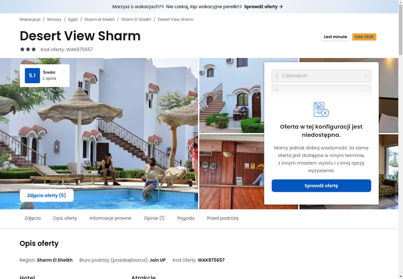 Niedostępność oferty została udokumentowana zrzutem ekranu.