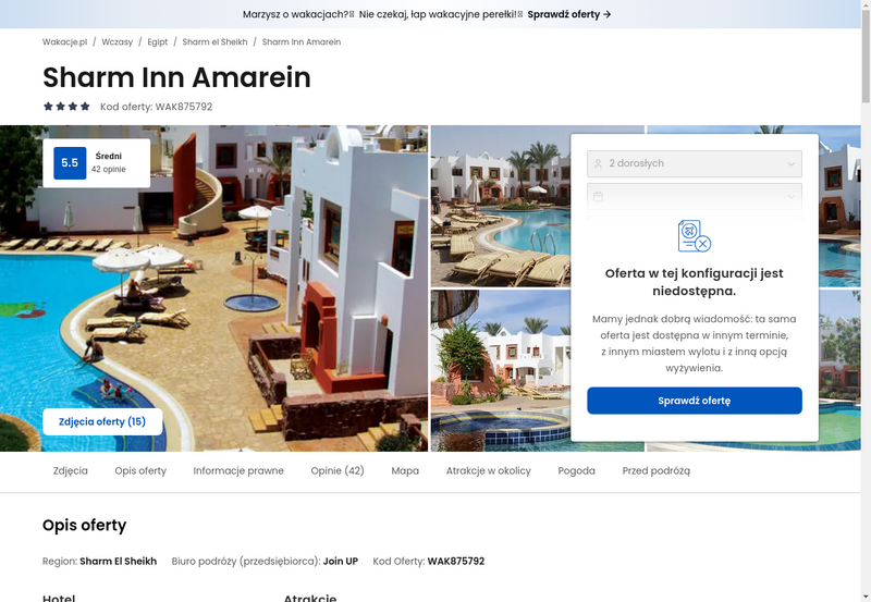 Niedostępność oferty została udokumentowana zrzutem ekranu.
