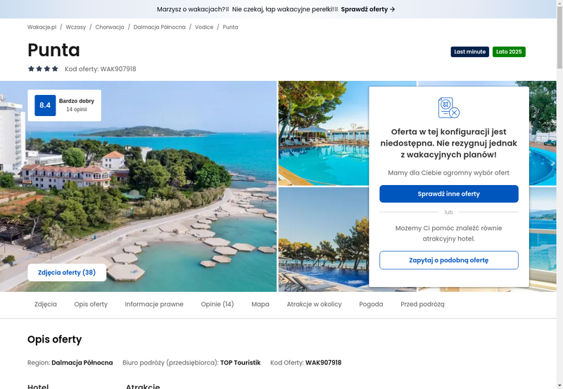 Niedostępność oferty została udokumentowana zrzutem ekranu.
