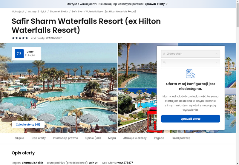 Niedostępność oferty została udokumentowana zrzutem ekranu.