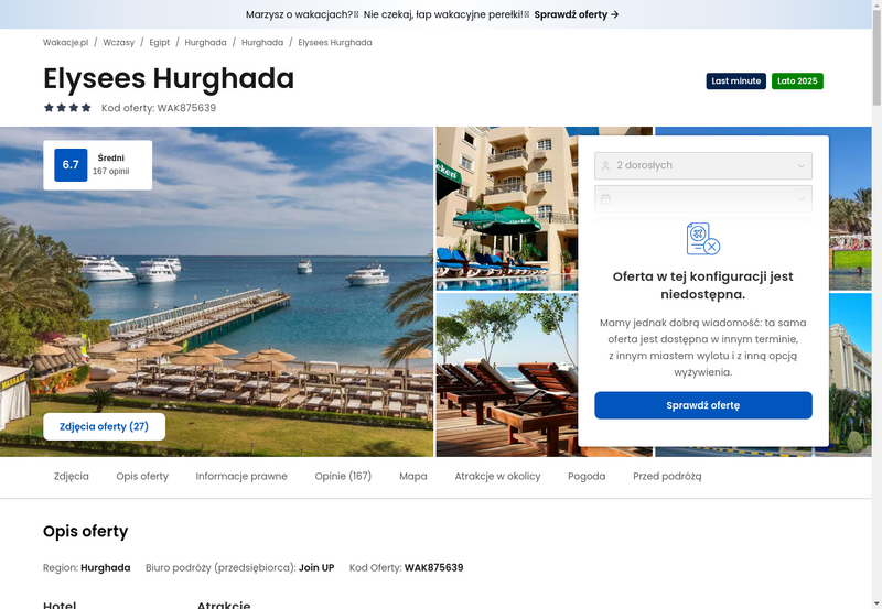 Misją Lastminuter.pl jest przedstawienie Ci najlepszych zdaniem naszej redakcji okazji na podróże. Opisujemy oferty znalezione przez nas w internecie i wskazujemy adresy internetowe, pod którymi samodzielnie możesz wykupić podróż lub elementy podróży. Ceny w artykułach są aktualne w chwili publikacji. Możemy otrzymywać wynagrodzenie od partnerów handlowych, do których Cię przekierowujemy. Nie ma to wpływu na cenę Twojej wycieczki. Powielanie publikacji zabronione.