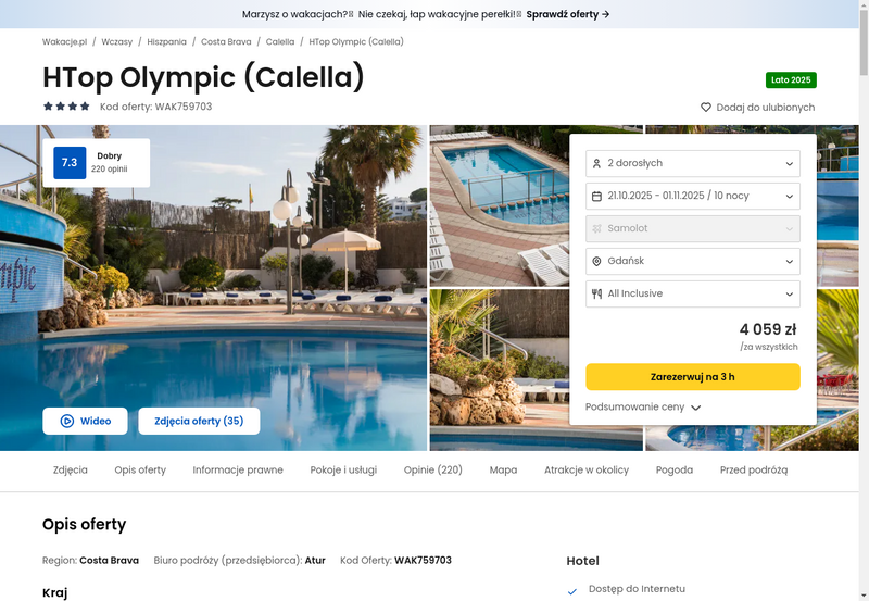 Aktualizacja: Relaks na Dzikim Wybrzeżu w Hiszpanii: 10 dni w hotelu z all inclusive soft od 1915 zł