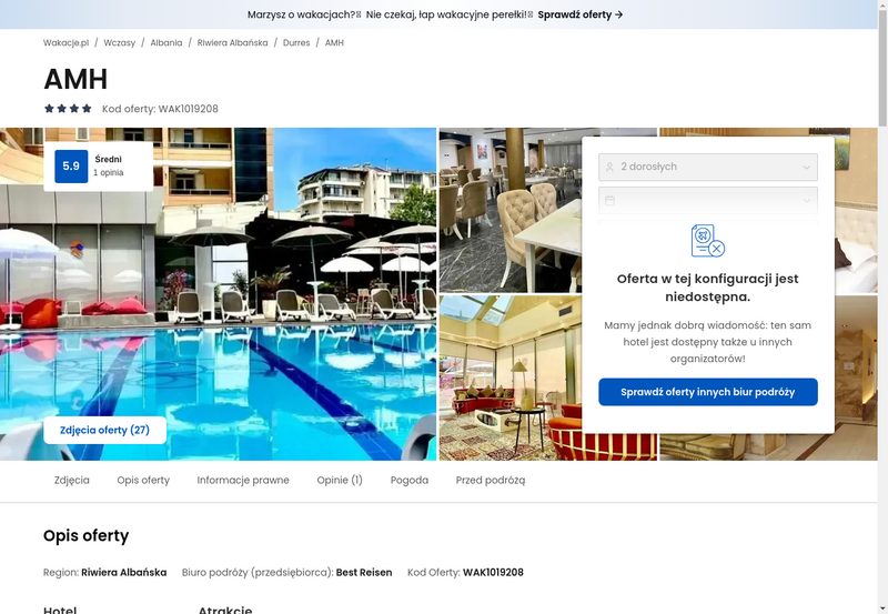 Niedostępność oferty została udokumentowana zrzutem ekranu.