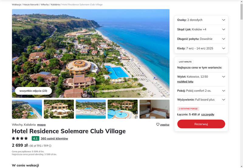 Aktualizacja: Włochy (malownicza Kalabria): 4* hotel z pełnym wyżywieniem plus za 2099 zł