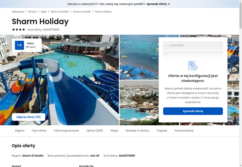 Niedostępność oferty została udokumentowana zrzutem ekranu.