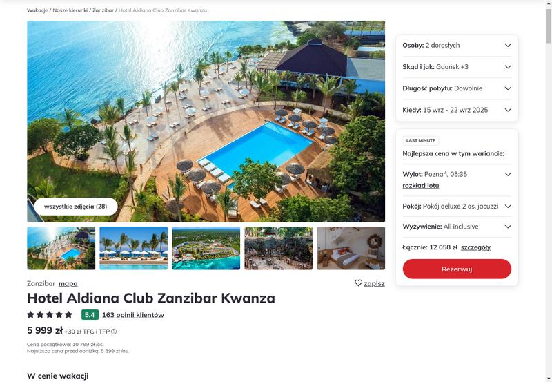 Aktualizacja: Zanzibar w wersji lux: 5* hotel z all inclusive + pokój deluxe z jacuzzi od 4599 zł!