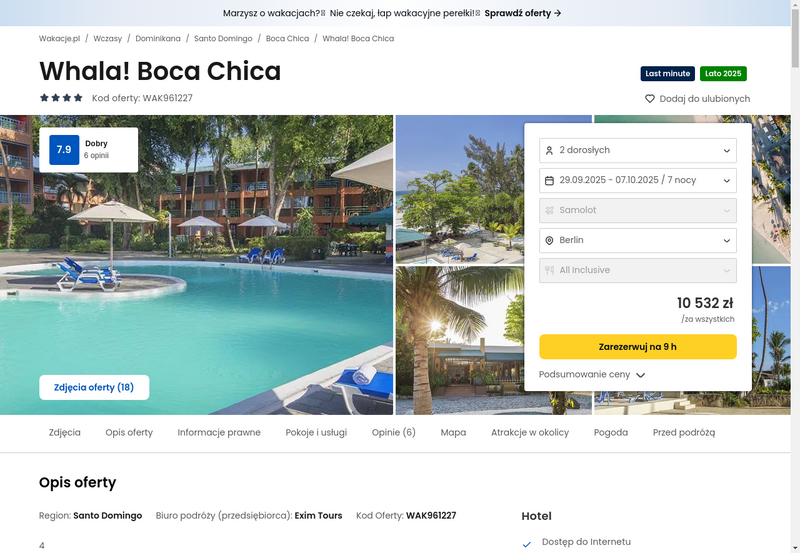 Misją Lastminuter.pl jest przedstawienie Ci najlepszych zdaniem naszej redakcji okazji na podróże. Opisujemy oferty znalezione przez nas w internecie i wskazujemy adresy internetowe, pod którymi samodzielnie możesz wykupić podróż lub elementy podróży. Ceny w artykułach są aktualne w chwili publikacji. Możemy otrzymywać wynagrodzenie od partnerów handlowych, do których Cię przekierowujemy. Nie ma to wpływu na cenę Twojej wycieczki. Powielanie publikacji zabronione.