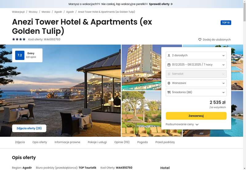 Misją Lastminuter.pl jest przedstawienie Ci najlepszych zdaniem naszej redakcji okazji na podróże. Opisujemy oferty znalezione przez nas w internecie i wskazujemy adresy internetowe, pod którymi samodzielnie możesz wykupić podróż lub elementy podróży. Ceny w artykułach są aktualne w chwili publikacji. Możemy otrzymywać wynagrodzenie od partnerów handlowych, do których Cię przekierowujemy. Nie ma to wpływu na cenę Twojej wycieczki. Powielanie publikacji zabronione.