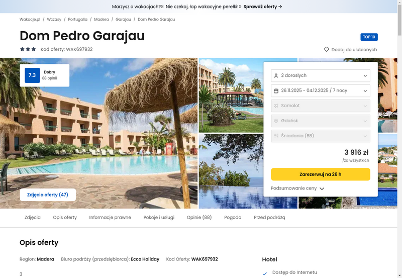 Aktualizacja: Zaplanuj ucieczkę przed jesienną chandrą: odpoczynek na Maderze, 3* hotel ze śniadaniami od 1858 zł