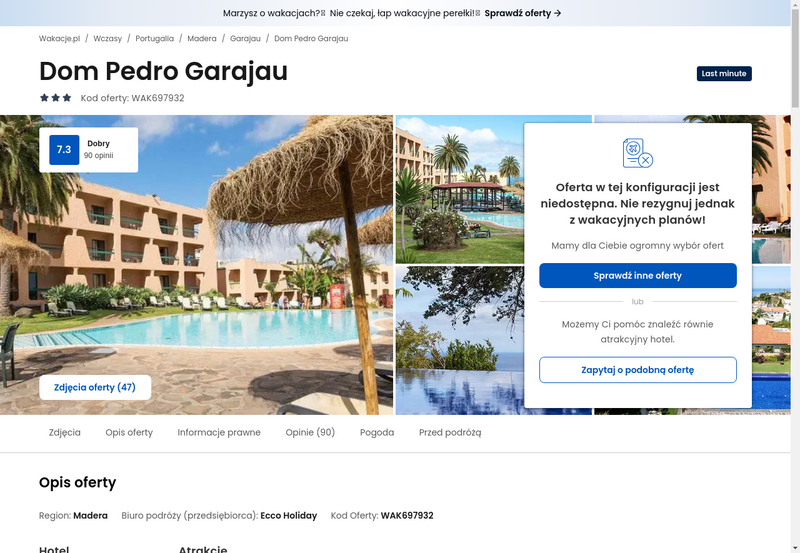Niedostępność oferty została udokumentowana zrzutem ekranu.