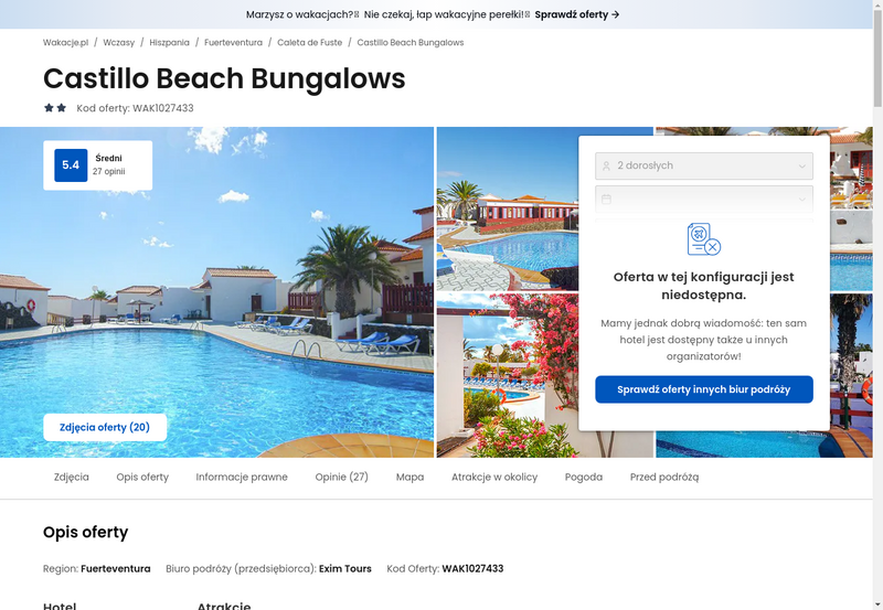 Niedostępność oferty została udokumentowana zrzutem ekranu.