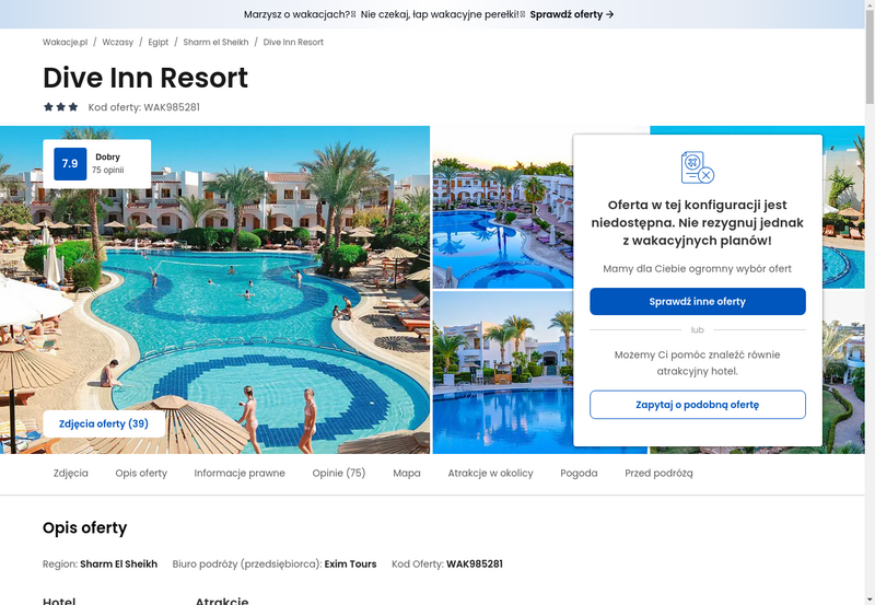 Niedostępność oferty została udokumentowana zrzutem ekranu.