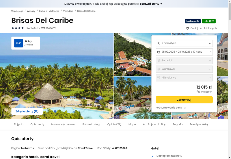 Aktualizacja: Wypoczynek na Karaibach: Kuba, 12 dni w 4* hotelu z all inclusive od 5899 zł