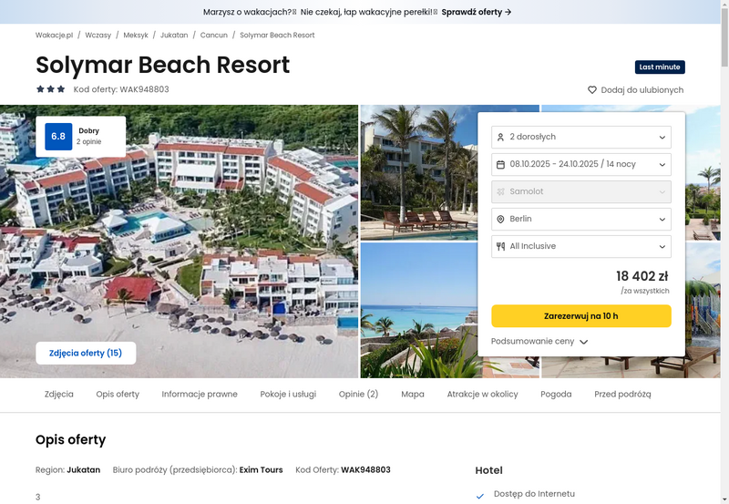 Aktualizacja: Długi wypoczynek w Meksyku: 14 dni w 3* hotelu z all inclusive przy plaży od 5484 zł