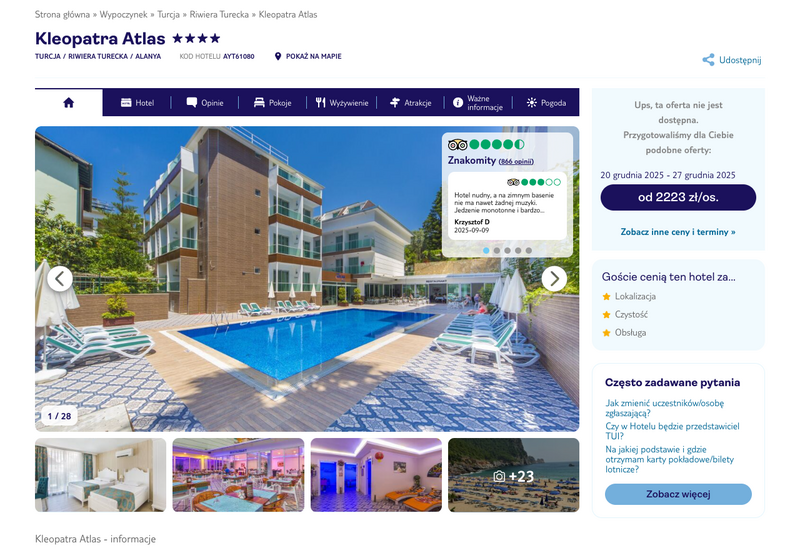 Oferty wycieczek dostarczone przez naszych partnerów nie są aktualizowane w czasie rzeczywistym, w związku z czym ceny i dostępność ofert mogą się nieznacznie różnić od aktualnych. Dokładamy wszelkich starań aby rozbieżności były jak najmniejsze.