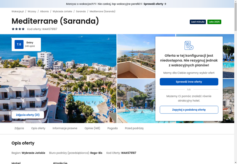 Niedostępność oferty została udokumentowana zrzutem ekranu.