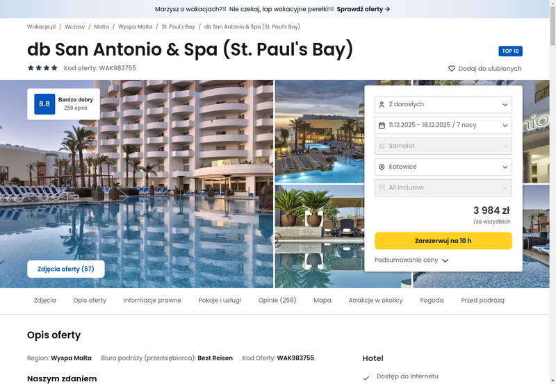 Misją Lastminuter.pl jest przedstawienie Ci najlepszych zdaniem naszej redakcji okazji na podróże. Opisujemy oferty znalezione przez nas w internecie i wskazujemy adresy internetowe, pod którymi samodzielnie możesz wykupić podróż lub elementy podróży. Ceny w artykułach są aktualne w chwili publikacji. Możemy otrzymywać wynagrodzenie od partnerów handlowych, do których Cię przekierowujemy. Nie ma to wpływu na cenę Twojej wycieczki. Powielanie publikacji zabronione.