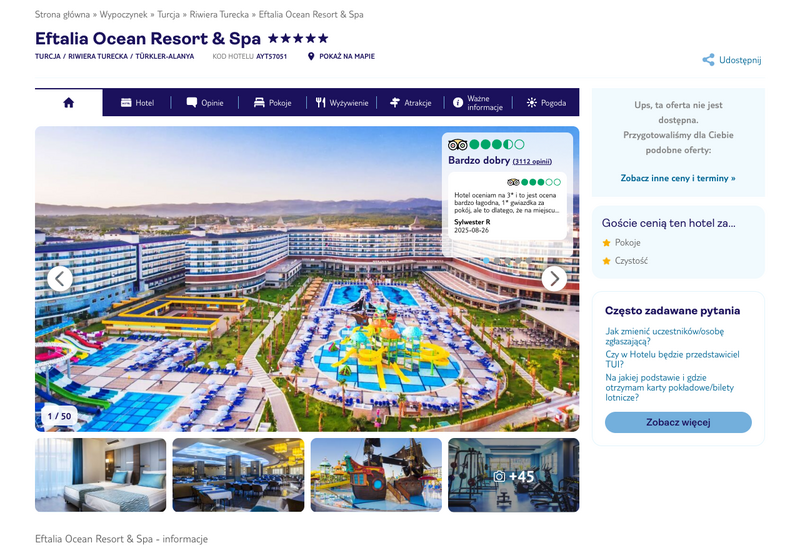 Niedostępność oferty została udokumentowana zrzutem ekranu.