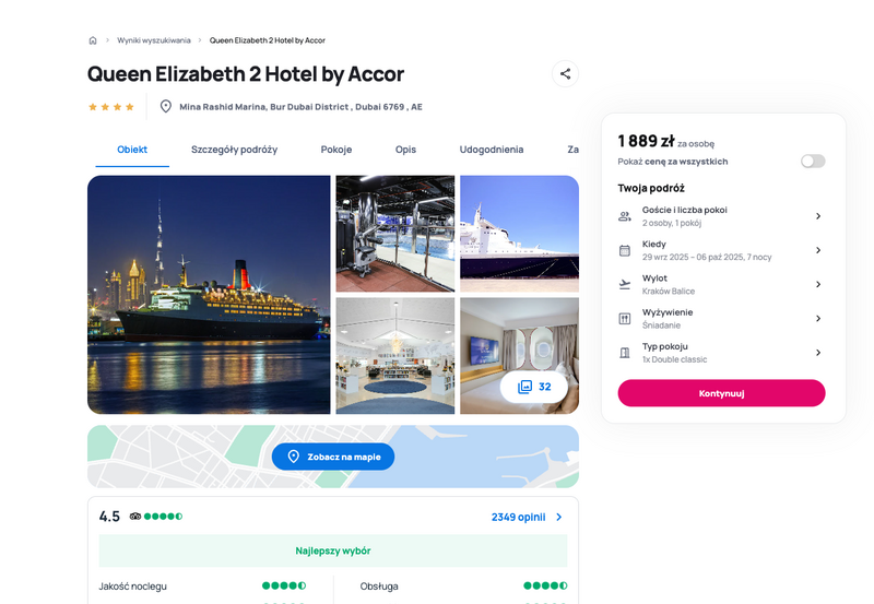 Aktualizacja: Wypoczynek w Dubaju: Pobyt na statku Queen Elizabeth 2 Hotel ze śniadaniami od 1799 zł