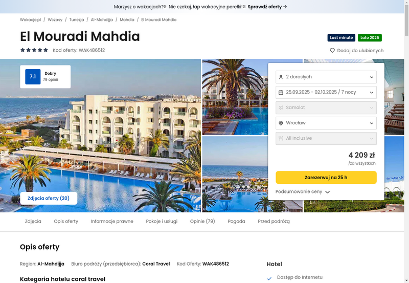 Misją Lastminuter.pl jest przedstawienie Ci najlepszych zdaniem naszej redakcji okazji na podróże. Opisujemy oferty znalezione przez nas w internecie i wskazujemy adresy internetowe, pod którymi samodzielnie możesz wykupić podróż lub elementy podróży. Ceny w artykułach są aktualne w chwili publikacji. Możemy otrzymywać wynagrodzenie od partnerów handlowych, do których Cię przekierowujemy. Nie ma to wpływu na cenę Twojej wycieczki. Powielanie publikacji zabronione.