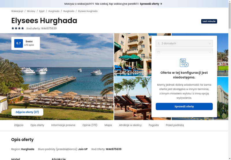 Niedostępność oferty została udokumentowana zrzutem ekranu.